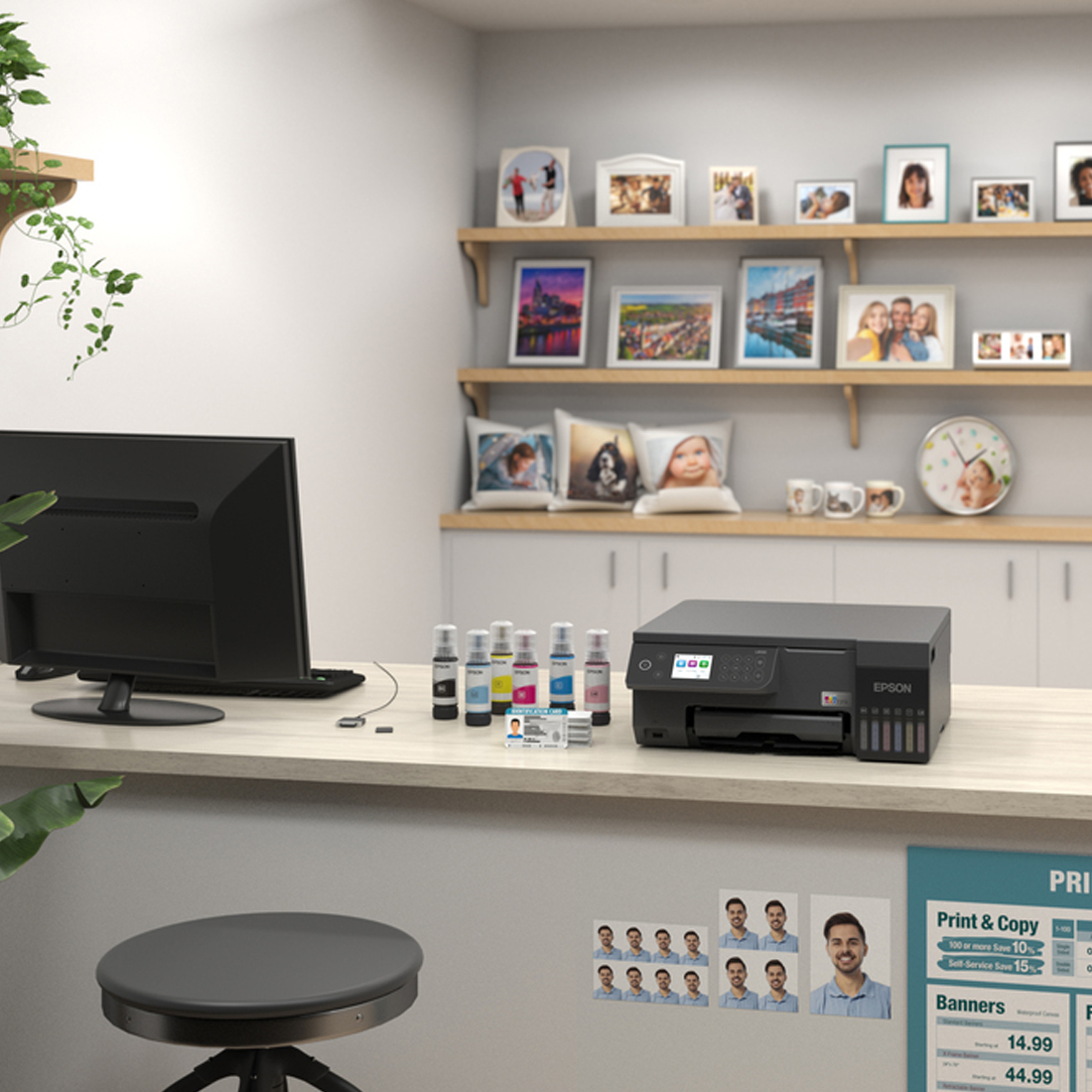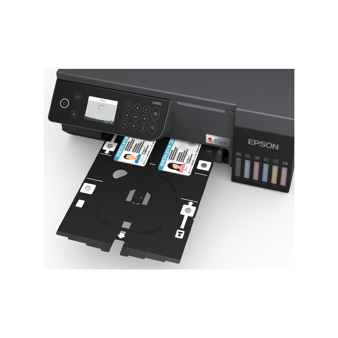 The Epson L8100 is a versatile all-in-one printer that supports print, scan, copy, and PVC card ID printing. With Wi-Fi and mobile printing capabilities, it delivers print speeds of 22 ppm black and colour, powered by high-yield Epson 108 ink, making it ideal for offices and businesses requiring flexible printing solutions.