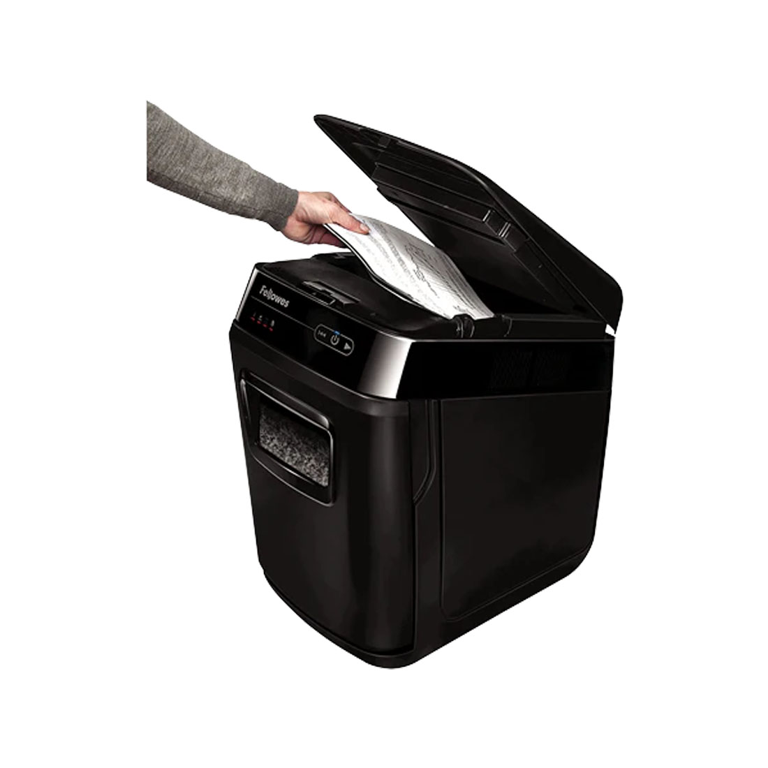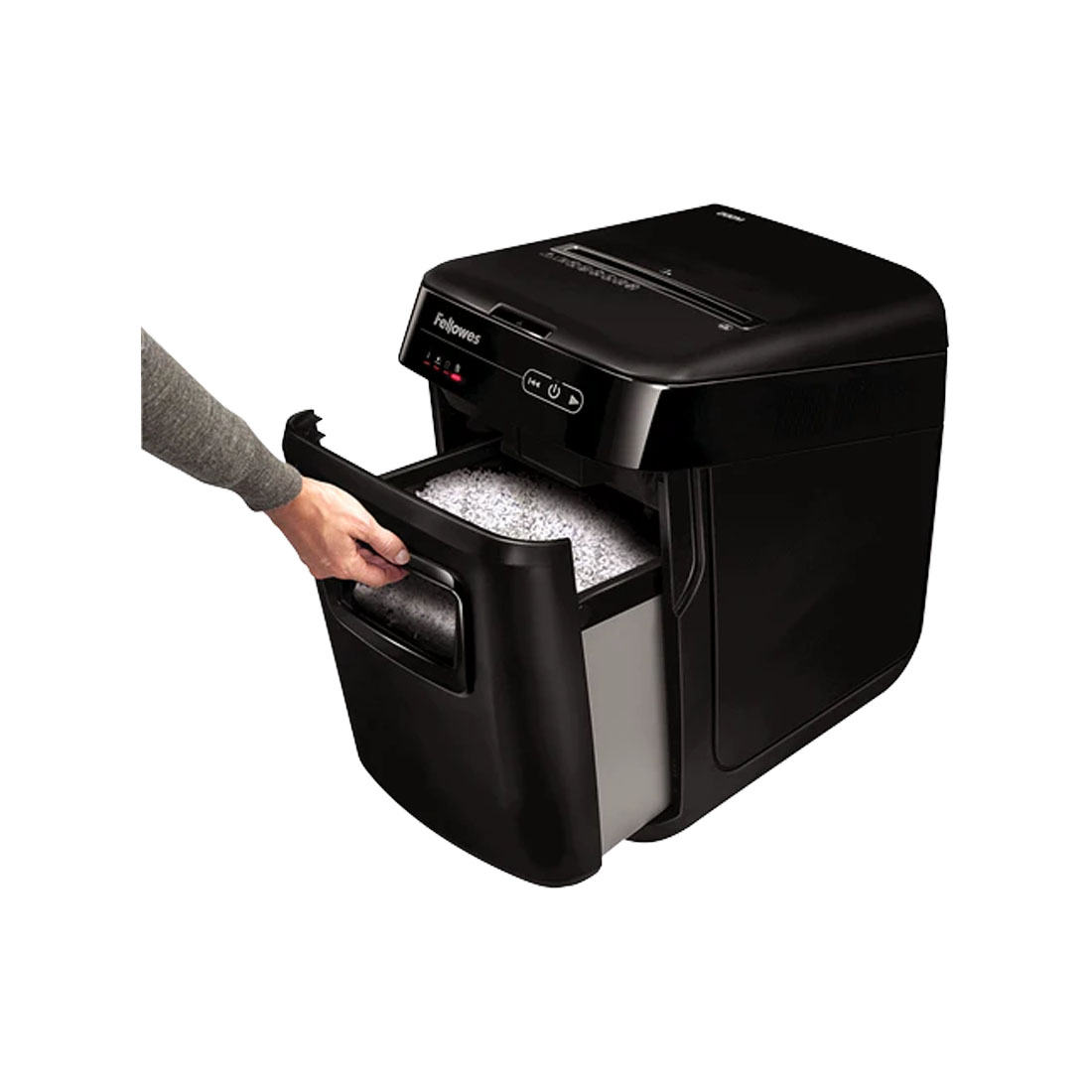 The Fellowes AutoMax 200C is a high-capacity cross-cut shredder designed for secure and efficient document disposal. With automatic shredding for up to 200 sheets and a 32L pull-out bin, it’s ideal for home offices or small workgroups. Its 4x38mm particle cut ensures sensitive information is safely destroyed, while SilentShred technology keeps operation quiet.