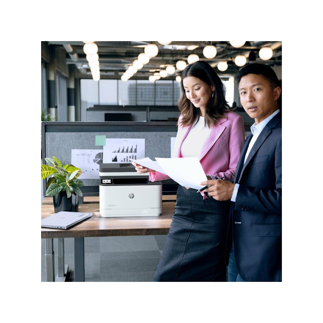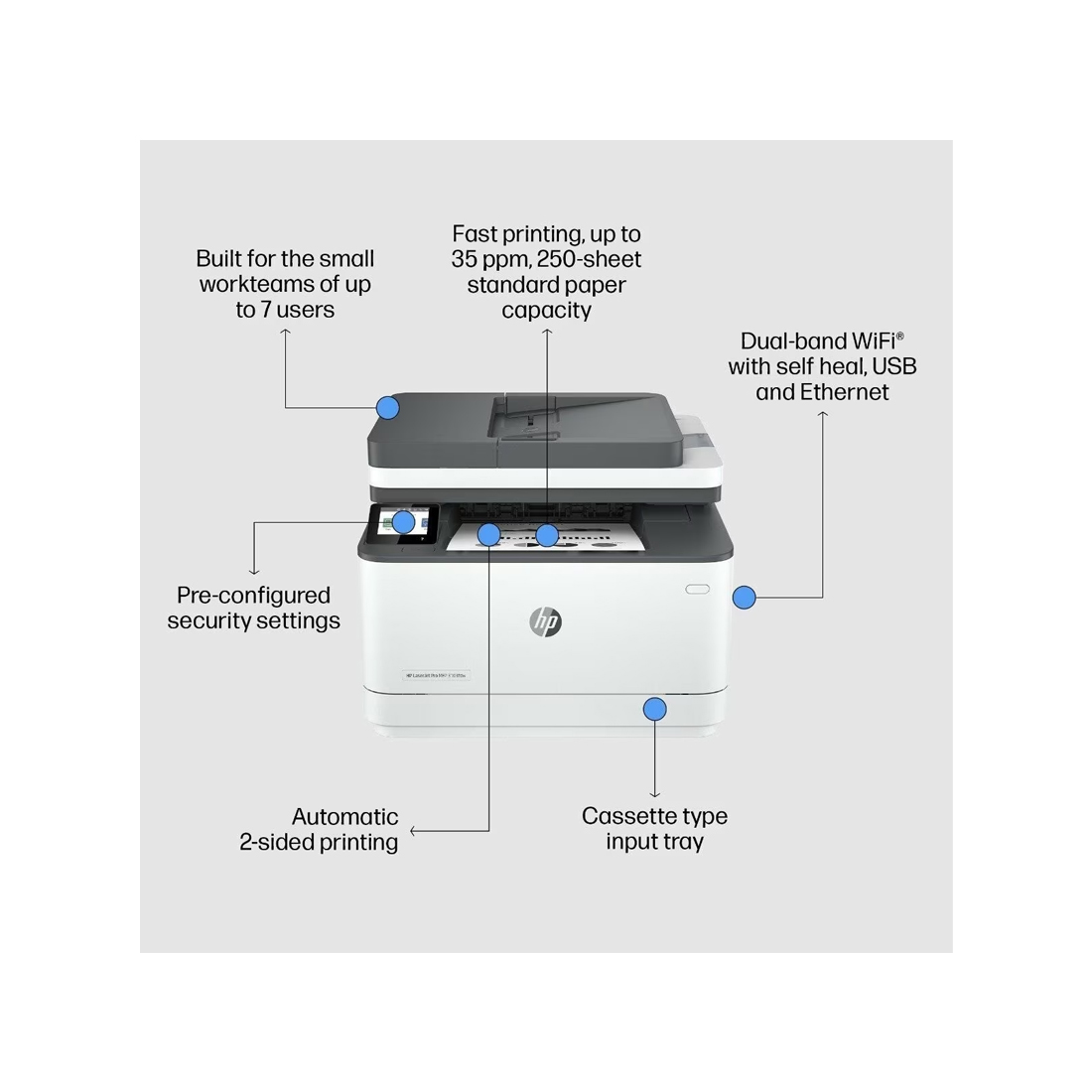 The HP LaserJet Pro MFP 3103fdn is a reliable all-in-one printer for office use. It supports printing, scanning, and faxing with Wi-Fi connectivity, automatic 2-sided printing, and an ADF for efficient document handling. It delivers print speeds of 33 ppm and comes with a 1,000-page black toner (145A).