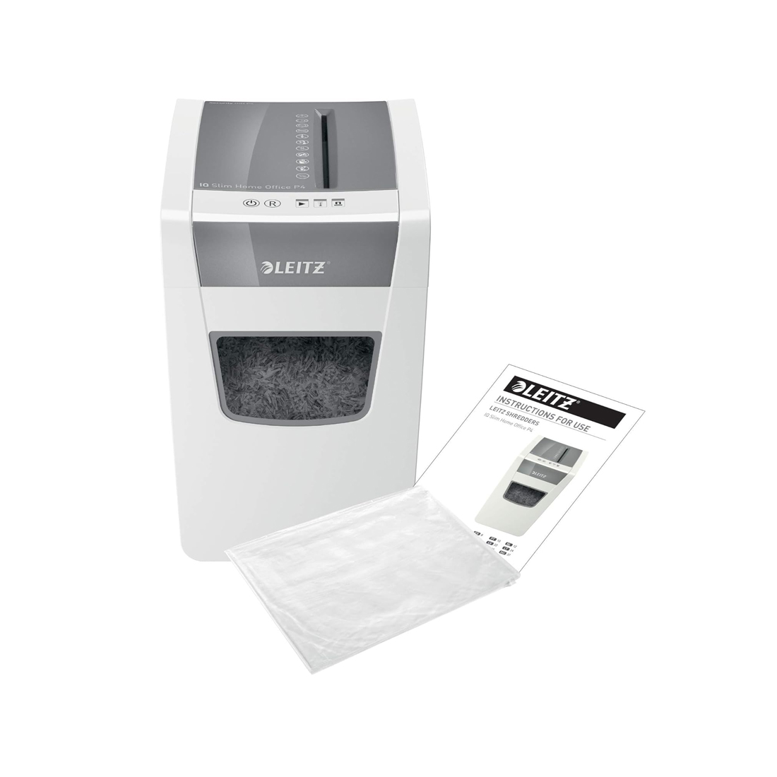 The Leitz Slim Home Office Shredder P4 is ideal for personal and office use. It offers reliable document shredding in a slim and compact design, making it perfect for small workspaces while keeping your documents secure.