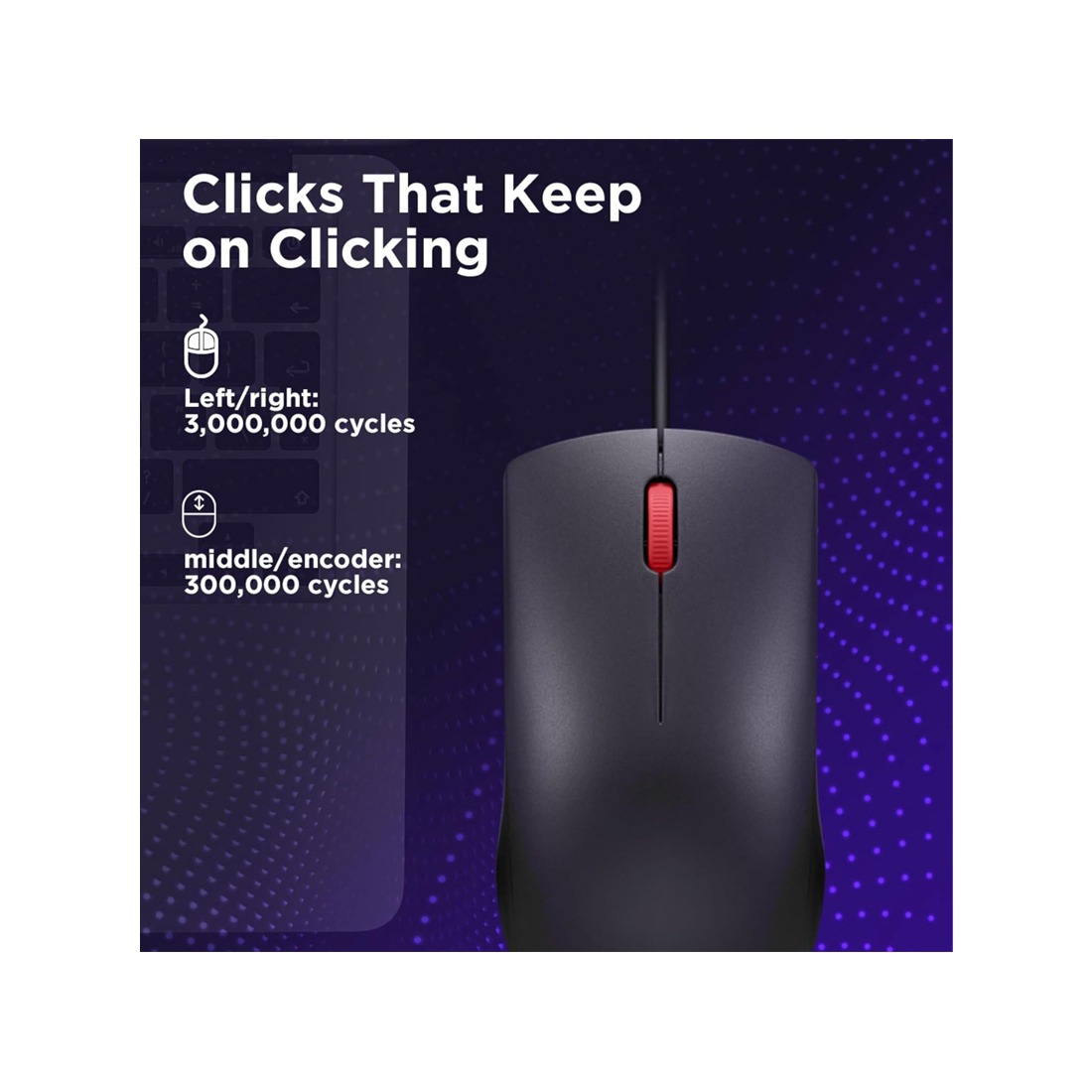 • Buttons life: Left/right: 3,000,000 cycles, middle/encoder: 300,000 cycles