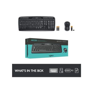The Logitech MK330 combo offers a compact, portable, and wireless solution for typing and navigation. With a spill-resistant keyboard and precise optical mouse, it’s perfect for home, office, or on-the-go use. Enjoy long battery life and reliable connectivity up to 10 meters.