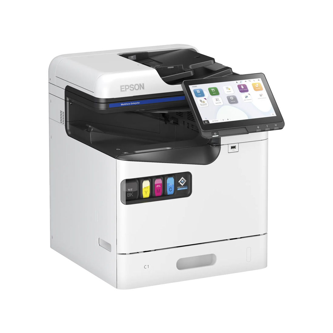 The Epson WorkForce Enterprise AM-C400 is a high-performance A4 color multifunction printer designed for busy office environments. Delivering fast print speeds of up to 40 pages per minute, this printer ensures smooth workflow with reliable printing, scanning, copying, and faxing. It combines powerful performance with low energy consumption, making it an efficient and cost-effective solution for modern workplaces.