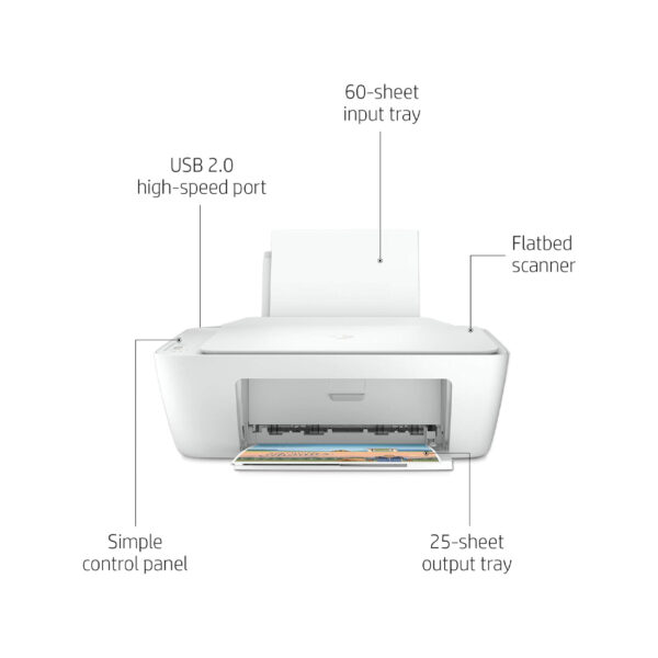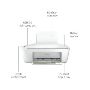 The HP DeskJet 2320 is a compact and affordable all-in-one inkjet printer ideal for home or small office use. It supports print, scan, and copy functions with print speeds of 7 ppm for black and 5 ppm for colour. It comes with starter ink yielding 120 pages black and 100 pages colour using HP 305 ink cartridges.