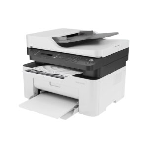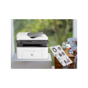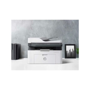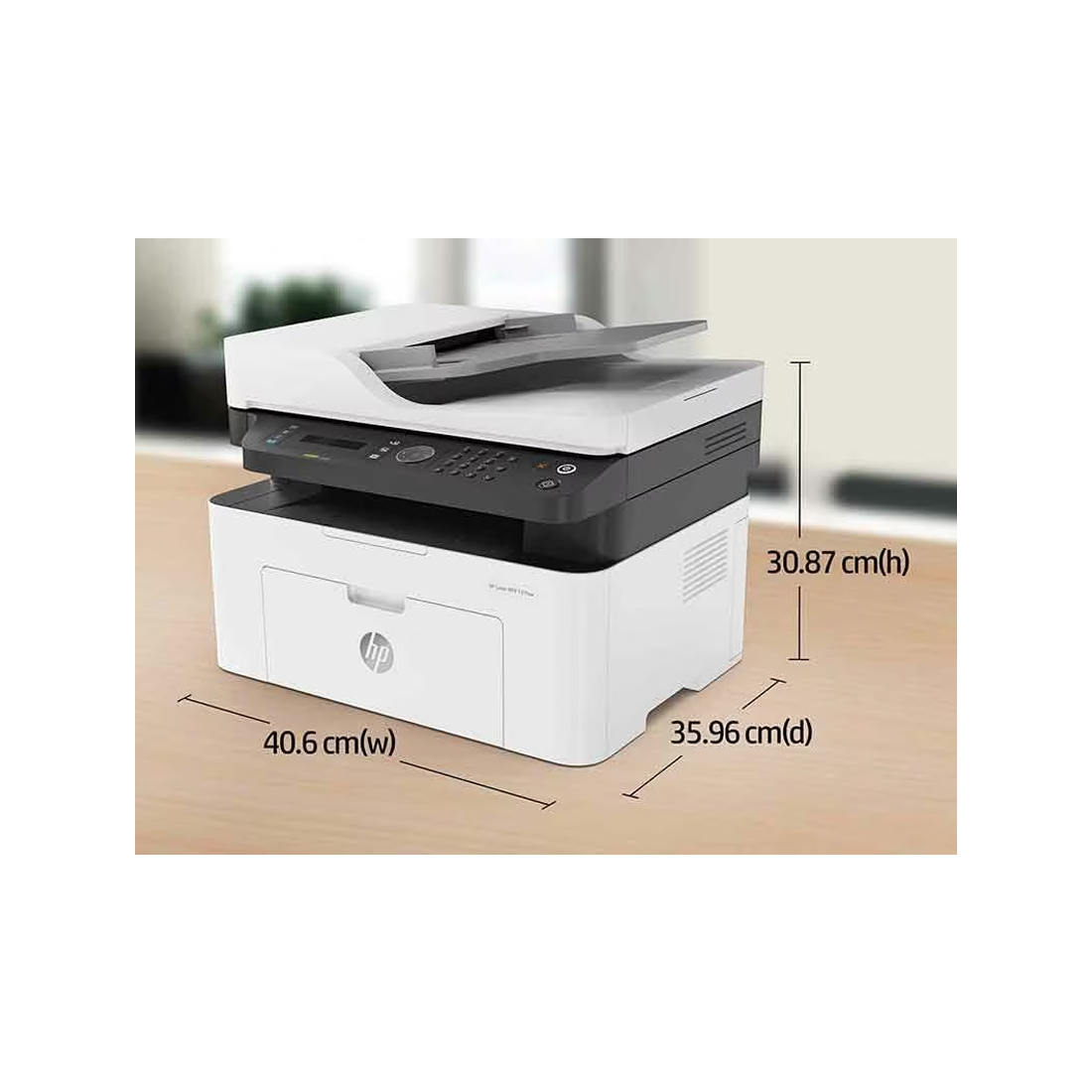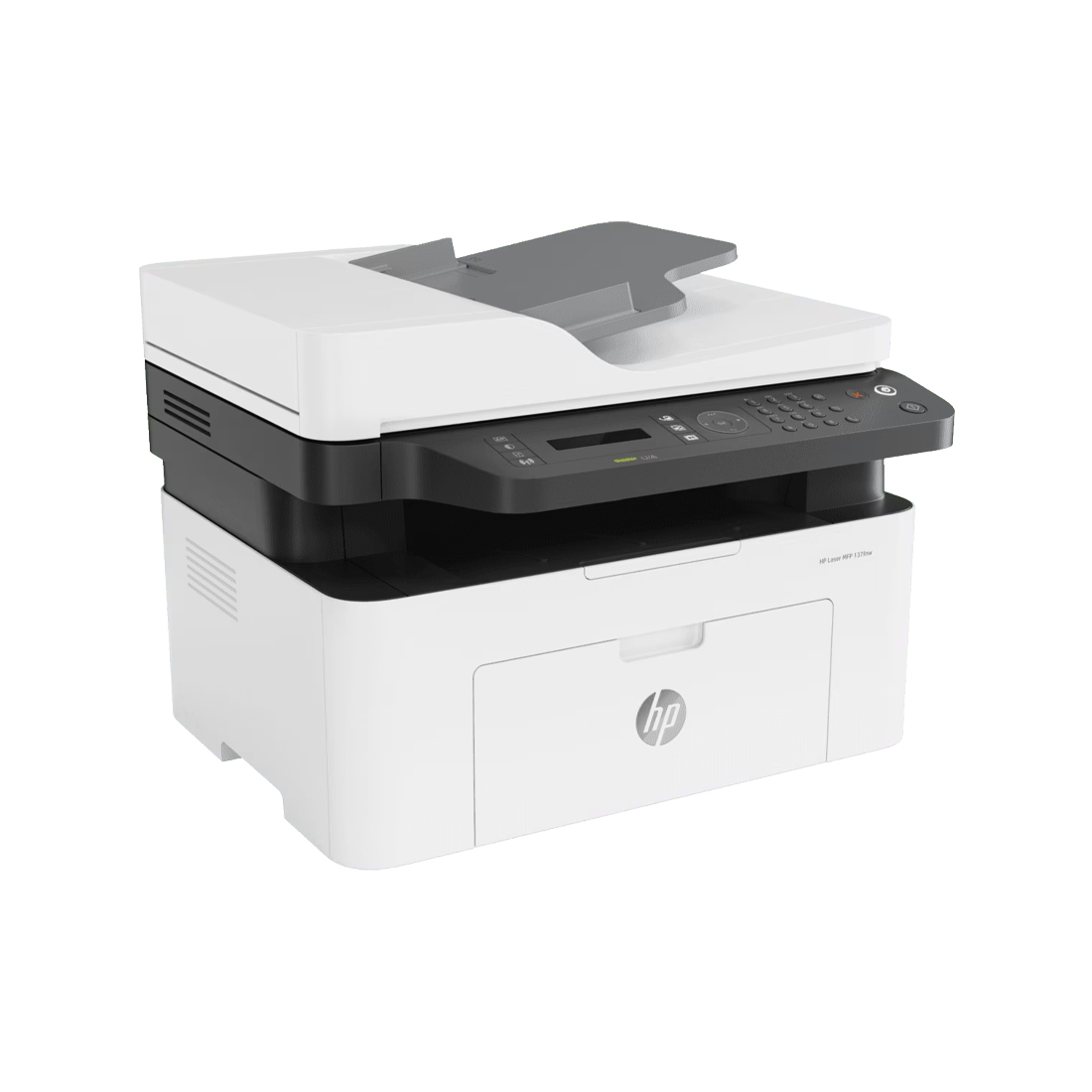 The HP LaserJet MFP 137fnw is a compact colour multifunction printer ideal for small offices and home use. It supports print, scan, copy, and fax functions with Wi-Fi, Ethernet. It delivers print speeds of 20 ppm black and 4 ppm colour, with included toner yields of 700 pages black and 500 pages colour using HP 117A toner.